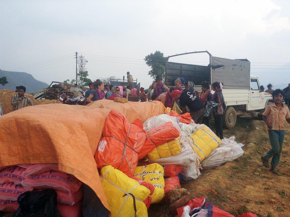 Zur Genüge durften wir die Wahrheit dieses Zitats erleben, bei unserer letzten Hilfsgüteraktion in den Bergen von Nuwakot. Unser Ziel war ein Dorf mit dem Namen Alam Dala 6 (Es gibt insgesamt 9 Dörfer mit dem Namen Alam Dala in der Region). Nach zwei Tagen der Planung und Organisation hatten wir am Morgen des 11. Mai einen Pickup mit 300 Zeltplanen beladen in Kathmandu stehen. Die grösste Schwierigkeit bestand darin, die Zeltplanen überhaupt zu beschaffen. In unserer Nachbarschaft Thamel werden die Zeltplanen zu Wucherpreisen verkauft, teilweise für 20 EUR das Stück (360cm x 450cm). In Indien bekommt man eine bessere Qualität für etwas über 5 EUR das Stück. Irgendwie mussten die letzten Rupien zusammenkratzen, da wir 300 Familien versorgen wollten, die ihr Dach über dem Kopf verloren haben. Schliesslich haben wir die Zeltplanen von drei verschiedenen Händlern erstanden. Die letzten Planen haben wir am Morgen der Tour erhalten. Auf dem Weg in die Berge haben wir am Strassenrand noch einige weitere Zeltplanen erworben. Das ist Nepal! Wir müssen schnell und flexibel denken und handeln dieser Tage. Feste Pläne halten hier vielleicht eine halbe Stunde.