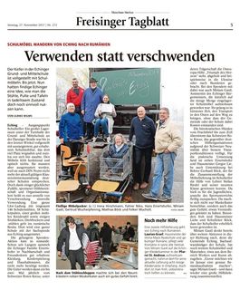 Miriam Gastl denkt bereits über weitere Aktionen in dieser Richtung nach, denn die Gemeinde Eching, Sachaufwandsträger der Schule, hat noch weitere Schulmöbel und Materialen, etwa aus dem Bereich Werken und Kunst abzugeben. „Gerne möchten wir im Januar eine genaue Bestandsaufnahme machen“, sagte Miriam Gastl – und dann wieder eine grosse Hilfslieferung zusammenstellen.